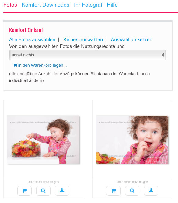 Für die ersten drei Aufnahmen einer Bestellung berechnen wir jeweils 12,90 €, für jede weitere Aufnahme dann nur noch 7,90 €. Hast Du eine Aufnahme bereits in einer früheren Bestellung erworben oder handelt es sich um ein bereits freigeschaltetes Jahresfoto, dann berechnen wir diese Aufnahme selbstverständlich nicht noch einmal.