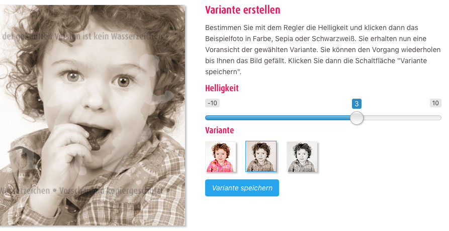 Jede Aufnahme lässt sich neben der Farbversion auch noch in den Varianten Sepia (leichte Brauntöne) und Schwarzweiß erstellen und herunterladen. Auch die Helligkeit Deiner Aufnahmen kannst Du individuell anpassen, falls Du magst.